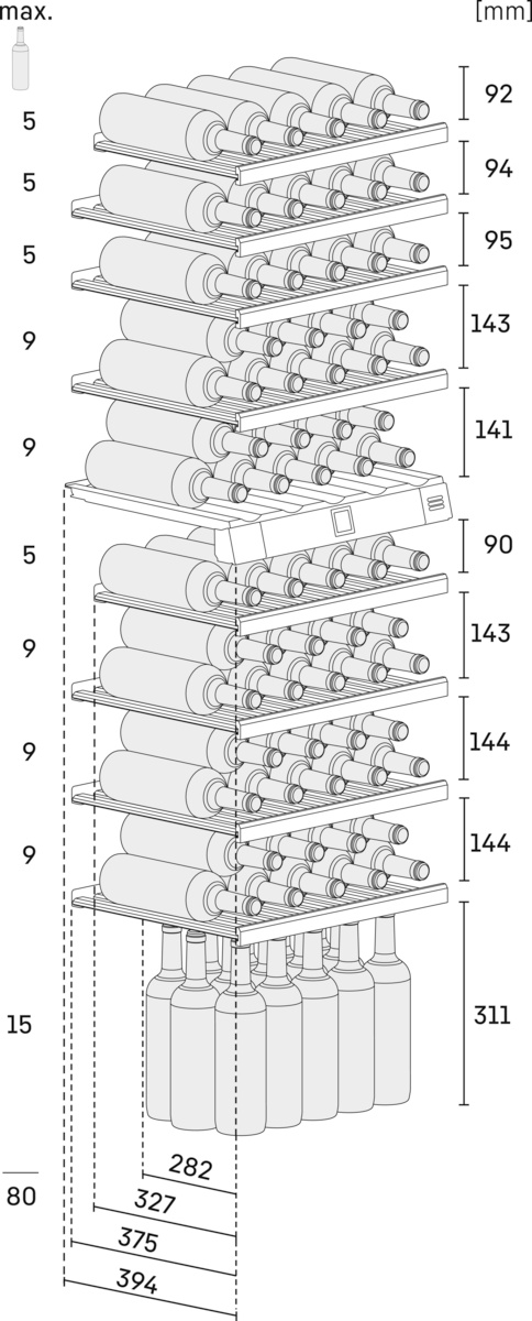 Оптимальная влажность воздуха – это один из важнейших критериев для правильного хранения вин. Это позволяет сохранить эластичность пробок и предотвращает их высыхание. Чтобы пробка не высыхала, бутылки следует хранить в горизонтальном положении. Благодаря постоянно поддерживаемой влажности 50 % винные шкафы создают идеальные условия для хранения вина. Влажность воздуха в винных климатических шкафах может по потребности регулироваться при помощи кнопки вентиляции.