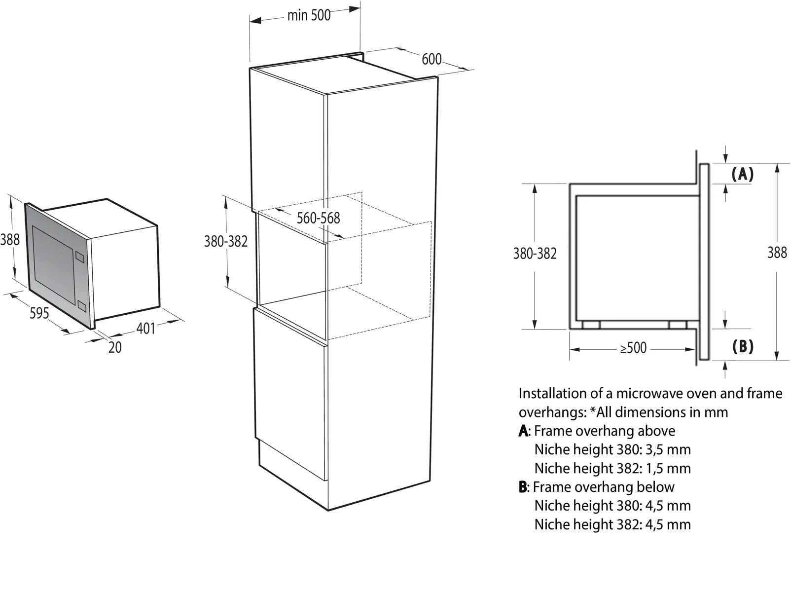 Минимальная высота ниши, мм
