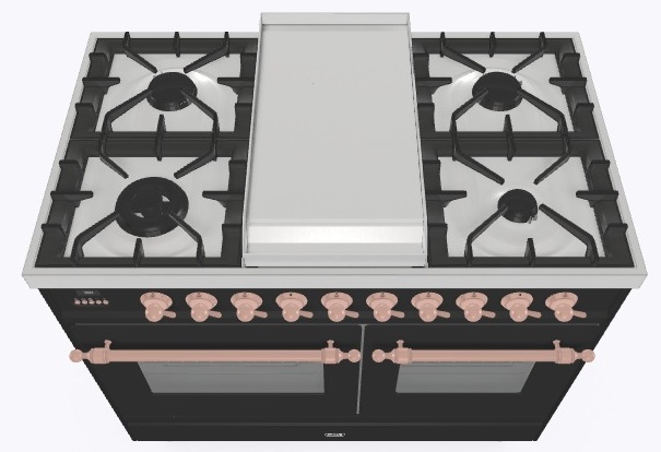 • Тип конфорок: 4 газовые конфорки, WOK конфорка, жарочная поверхность Fry Top