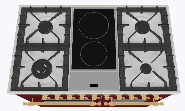 2 индукционные, 4 газовые, 1 Dual конфорка