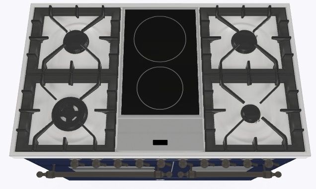 2 индукционные, 4 газовые, 1 Dual конфорка