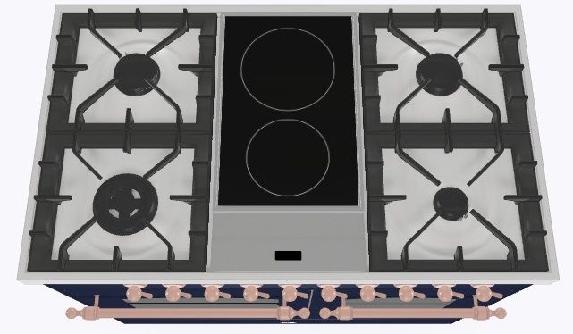 2 индукционные, 4 газовые, 1 Dual конфорка