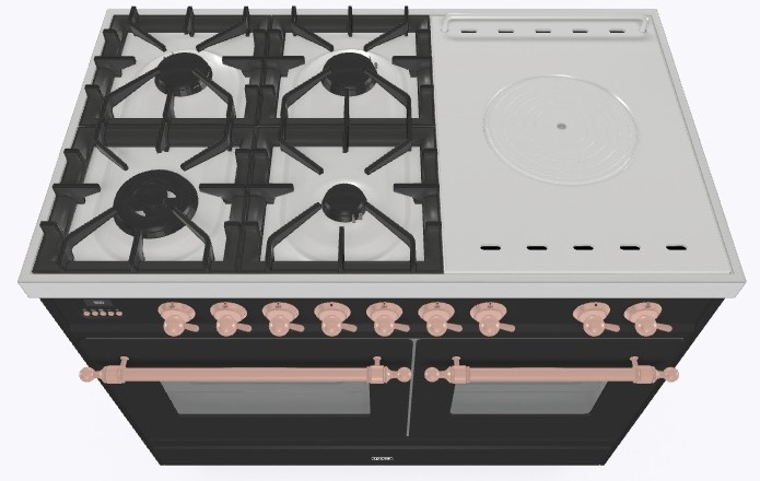 • Тип конфорок: 4 газовые конфорки, Dual конфорка, жарочная поверхность Coup de Feu